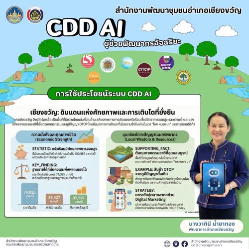 CDD AI ผู้ช่วยพัฒนากร บริการอัจฉริยะ เพื่อการพัฒนาชุมชน ระบบช่วยวิเคราะห์และประมวลผล ข้อมูล Big Data กรมการพัฒนาชุมชน ที่ถูกต้อง แม่นยำ และทันสมัย ใช้งานง่าย ในคลิกเดียว